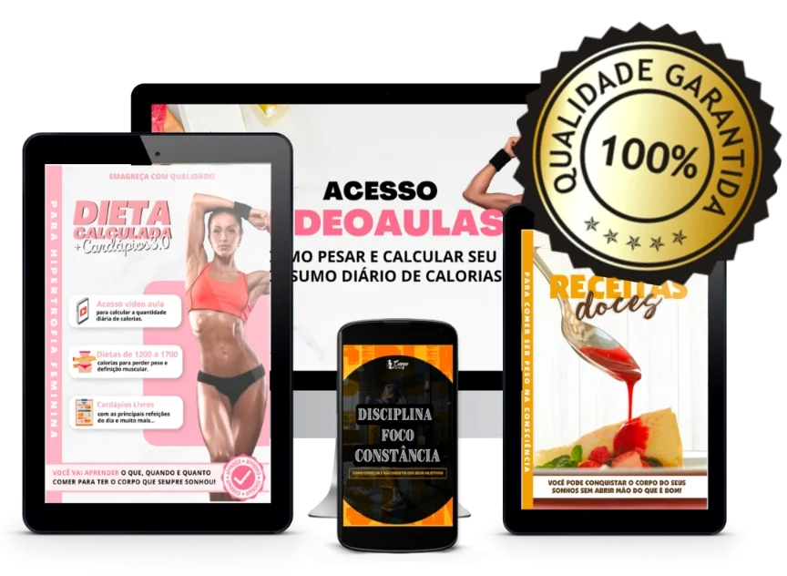 Você vai aprender a calcular exatamente quantas calorias seu corpo precisa para emagrecer e ainda terá acesso a cardápios prontos, simples e práticos de seguir, com bônus exclusivos, acesso vitalício e suporte para te acompanhar no processo.