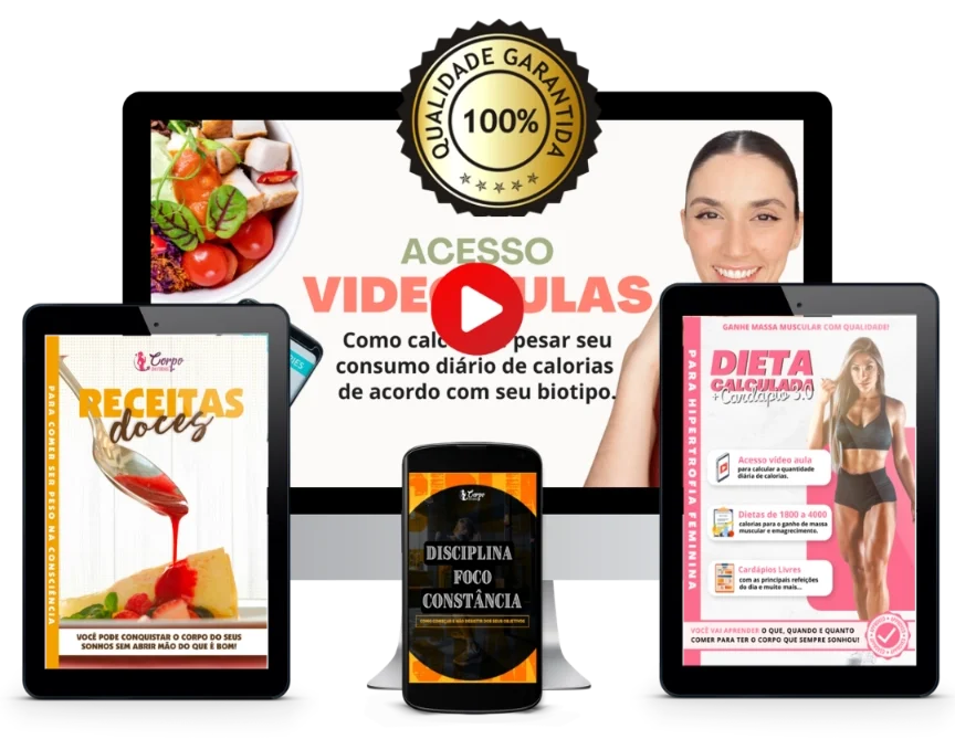 Você seguirá um passo a passo simples, aprendendo a calcular a quantidade ideal de calorias que precisa ingerir diariamente. Após realizar o cálculo, receberá cardápios sugestivos para seguir. Esses cardápios são elaborados com uma alimentação específica, ideal para quem busca um corpo bonito com qualidade muscular